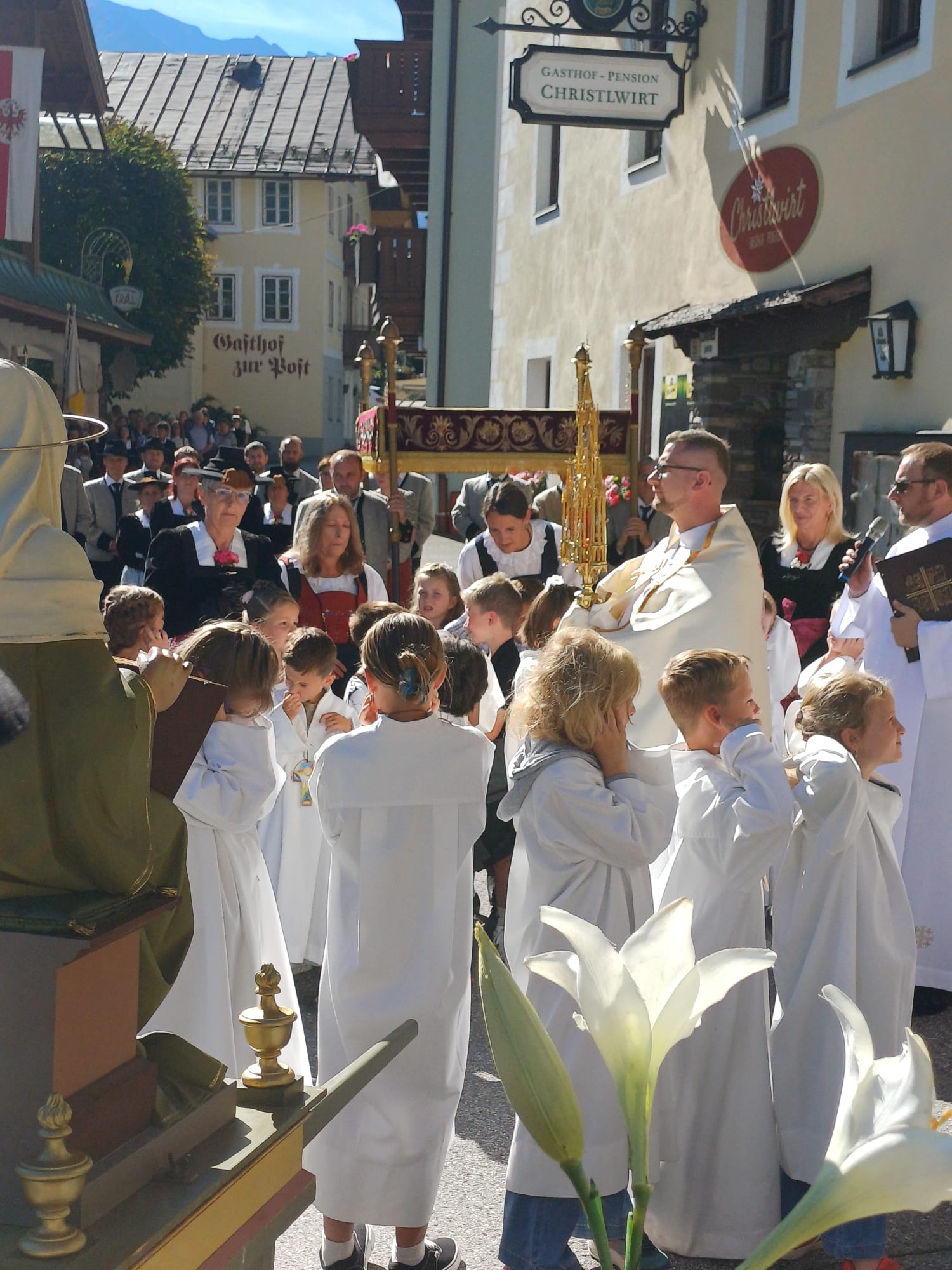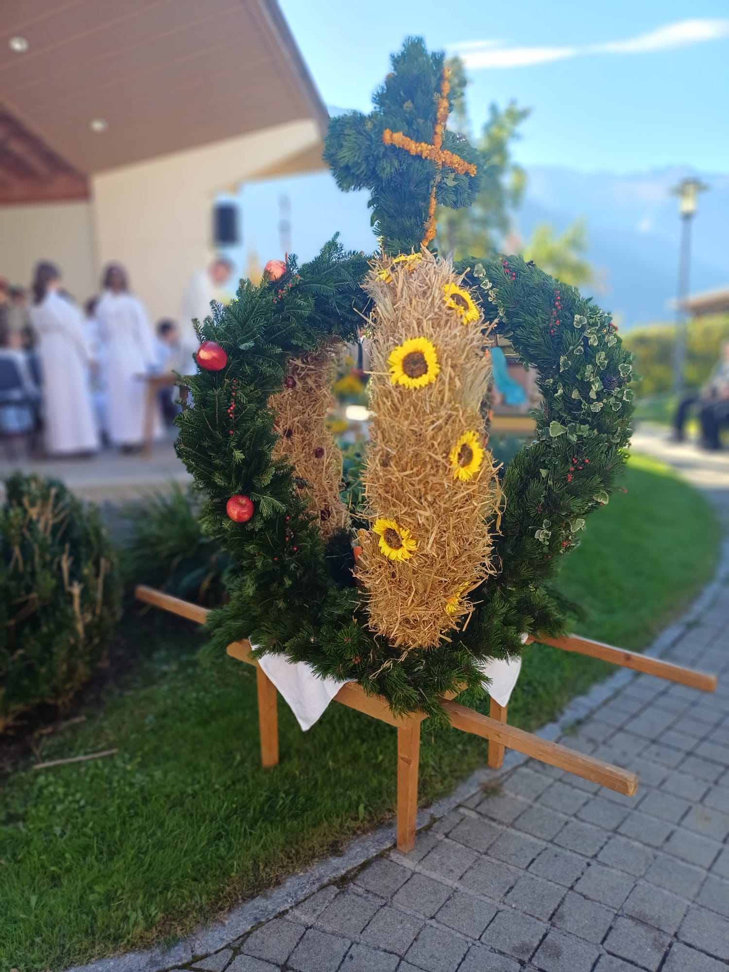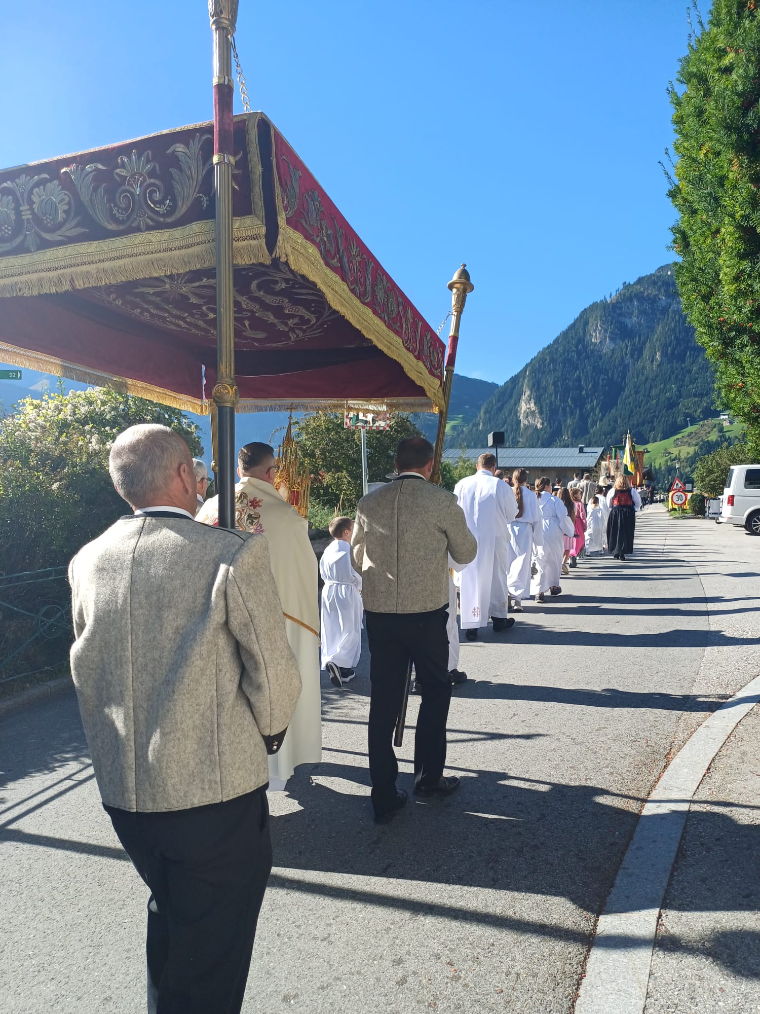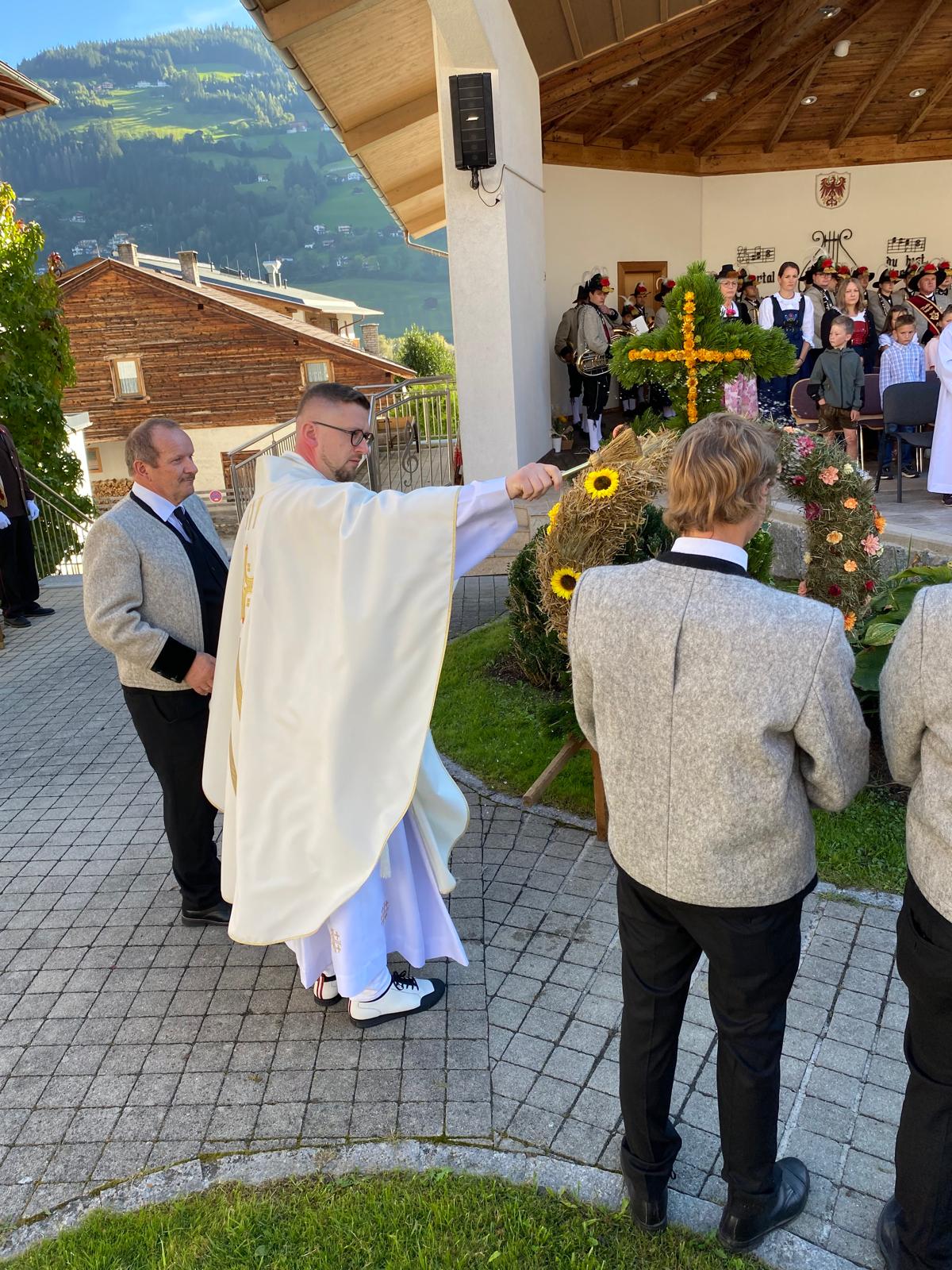 Im Anschluss an die Messe folgte die Prozession durch Schwendau. Die vier liebevoll geschmückten Altäre erinnerten uns ebenfalls an den Sinn des Erntedankfestes.