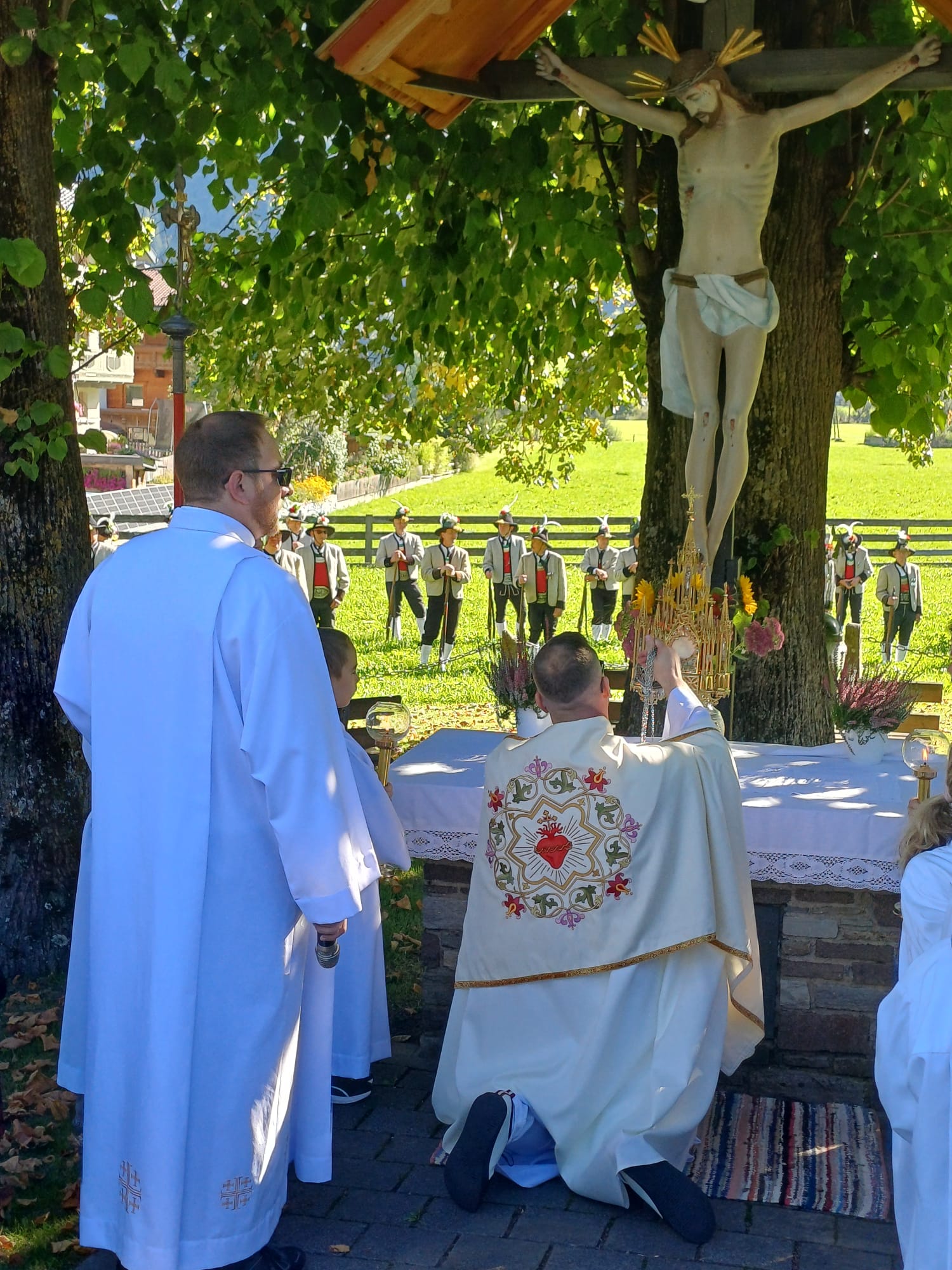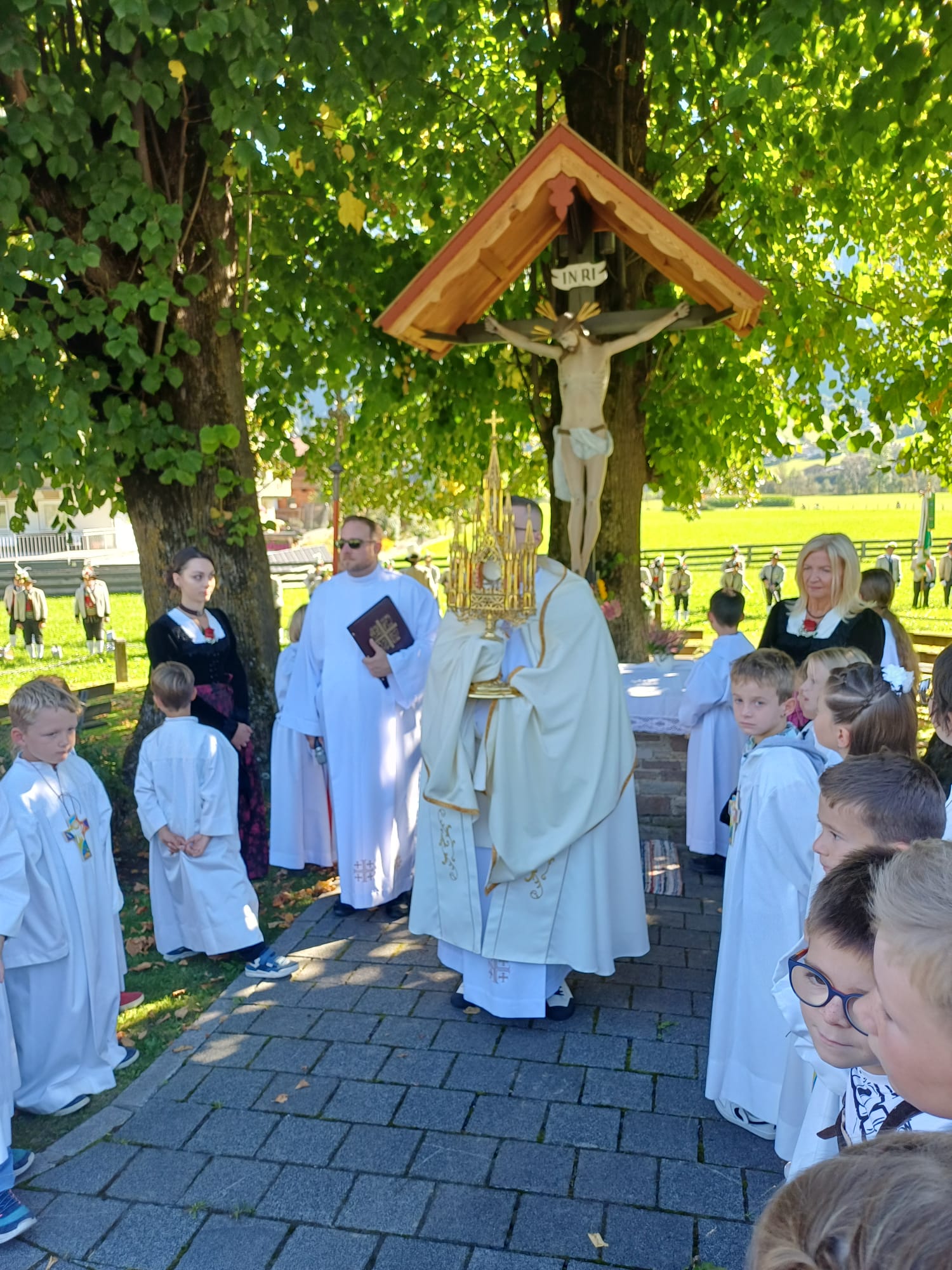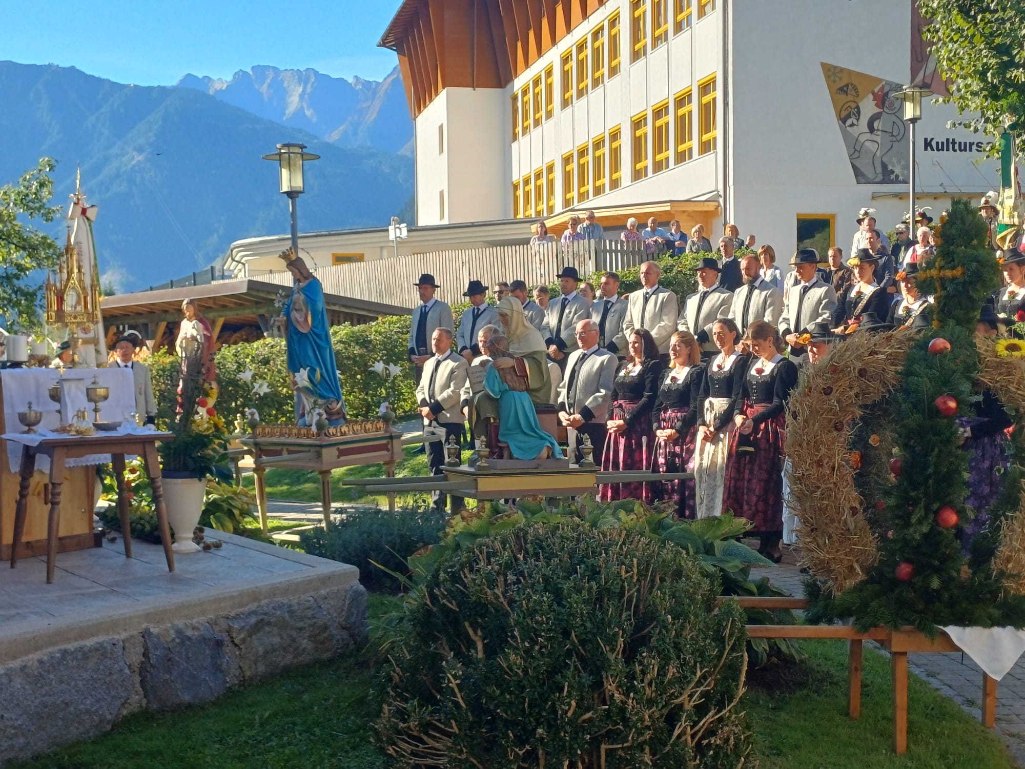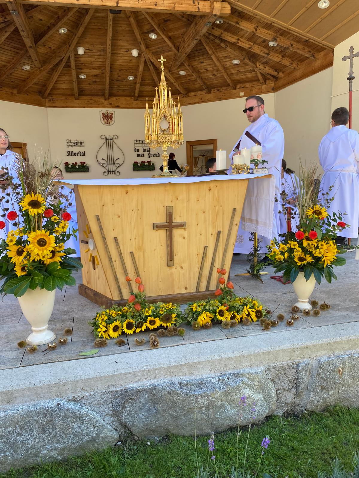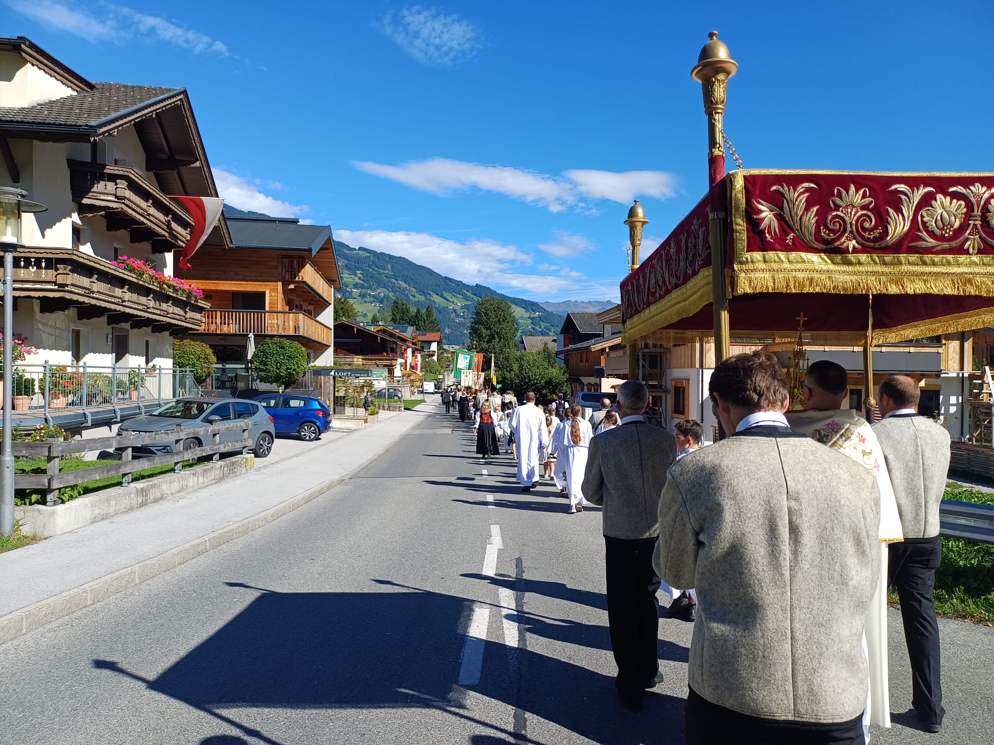 Im Anschluss an die Messe folgte die Prozession durch Schwendau. Die vier liebevoll geschmückten Altäre erinnerten uns ebenfalls an den Sinn des Erntedankfestes.