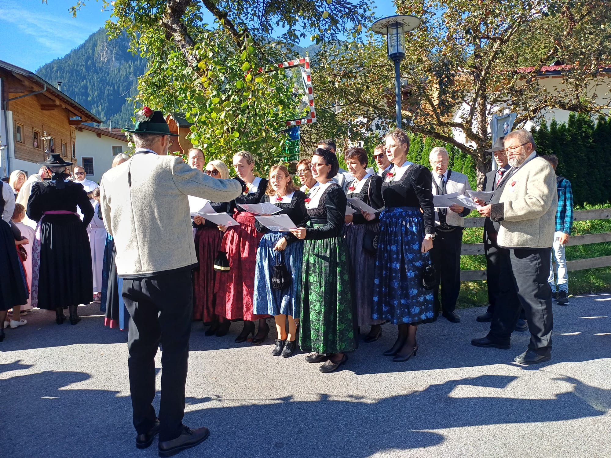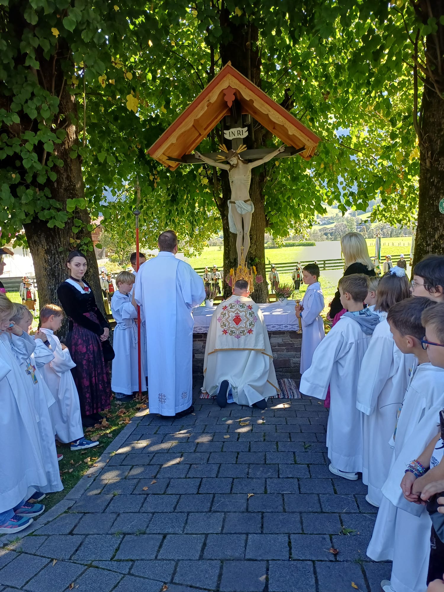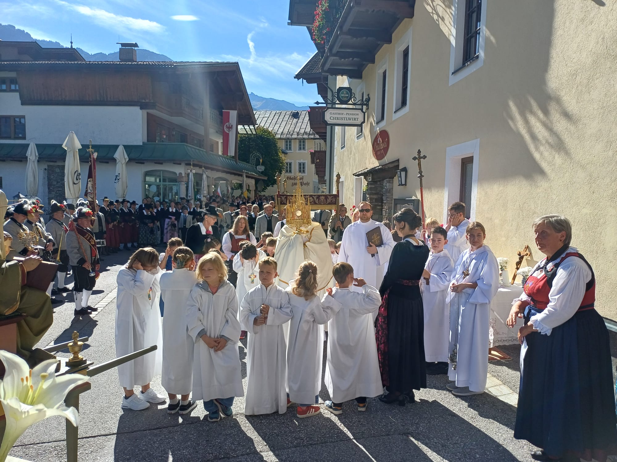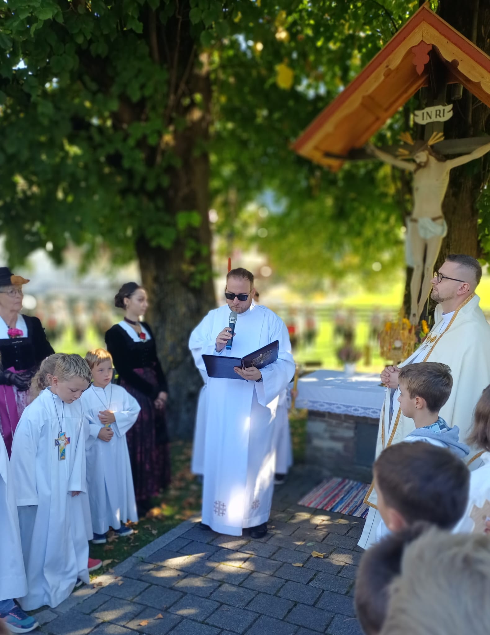 Im Anschluss an die Messe folgte die Prozession durch Schwendau. Die vier liebevoll geschmückten Altäre erinnerten uns ebenfalls an den Sinn des Erntedankfestes.