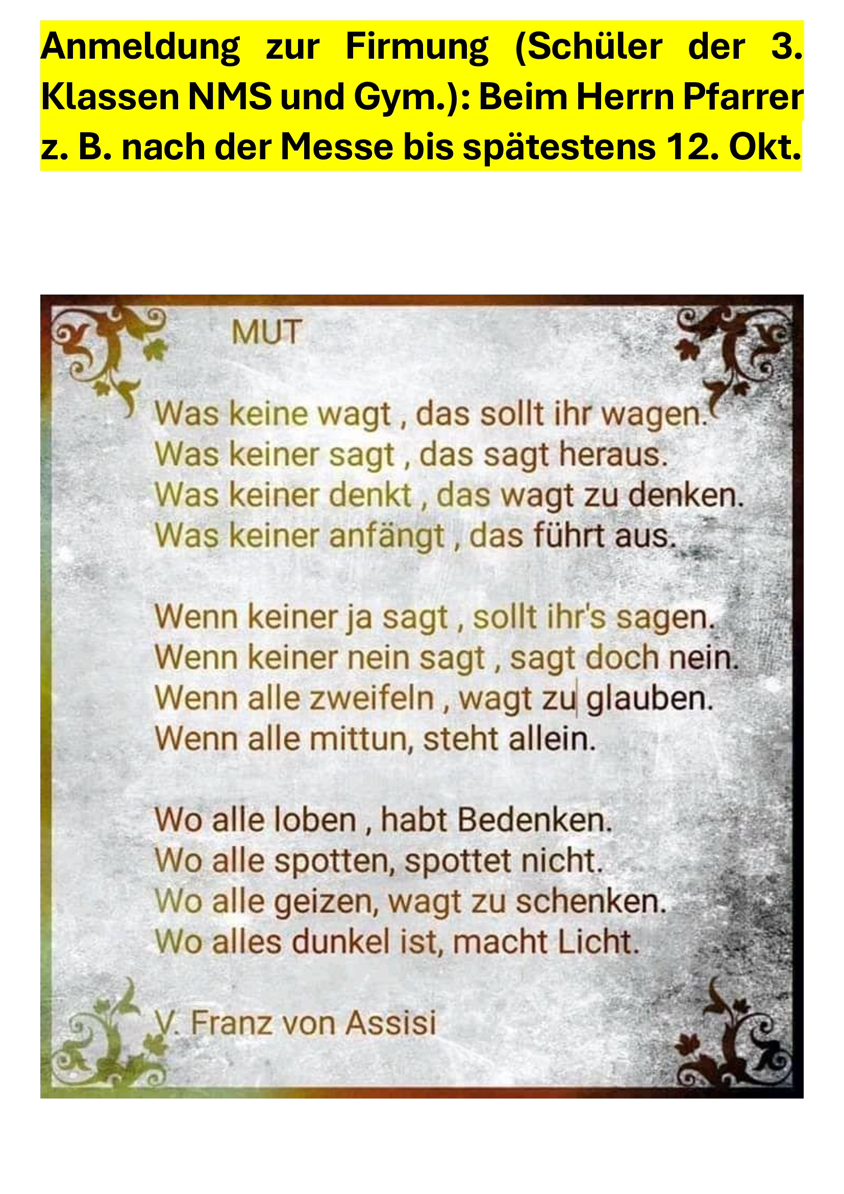 Daher die Einladung: Kommen Sie vorbei und treten Sie ein. Der Herr will mit uns auf dem Weg sein. Scheuen Sie sich nicht mit uns und mit mir in Kontakt zu treten.