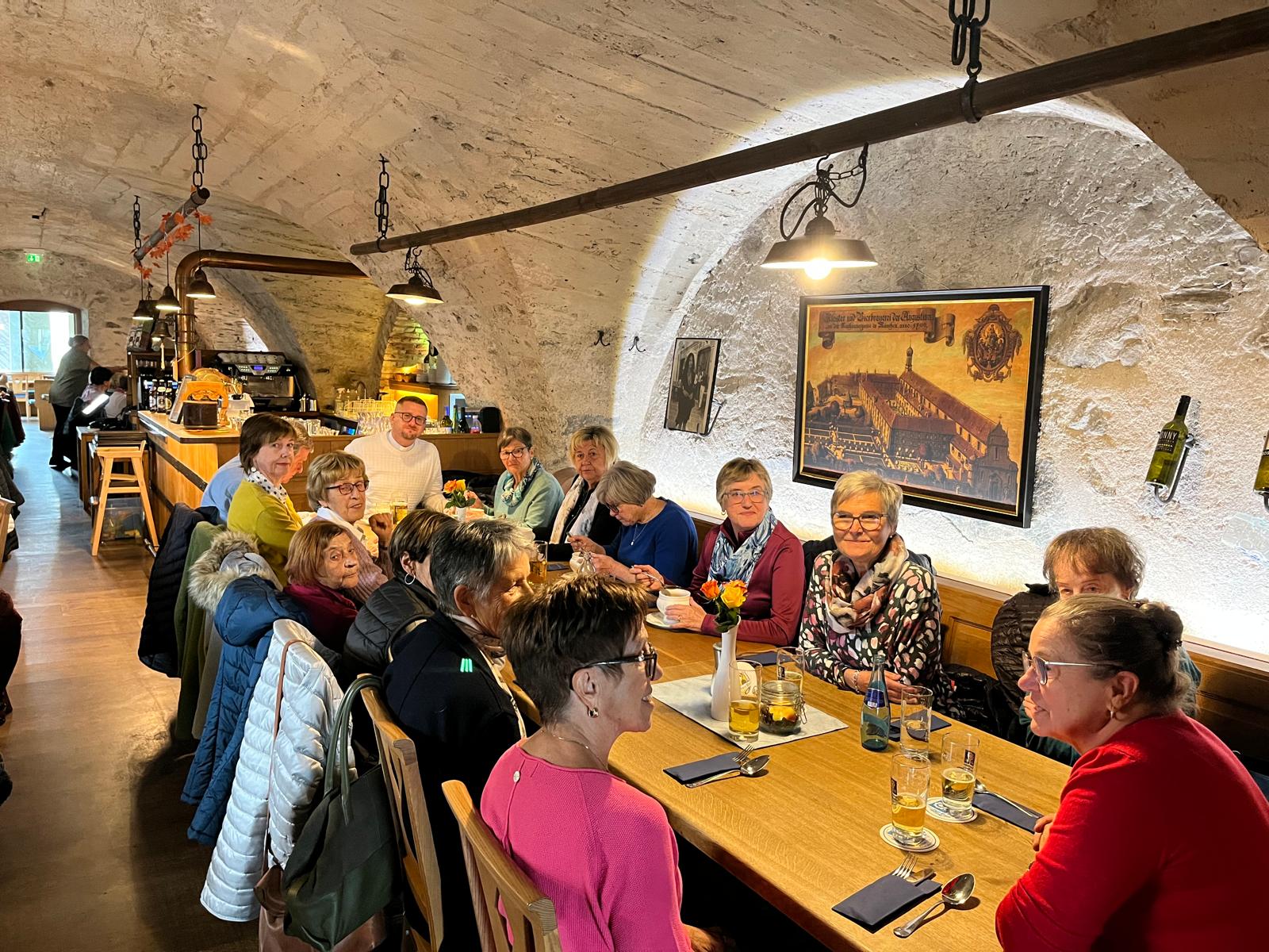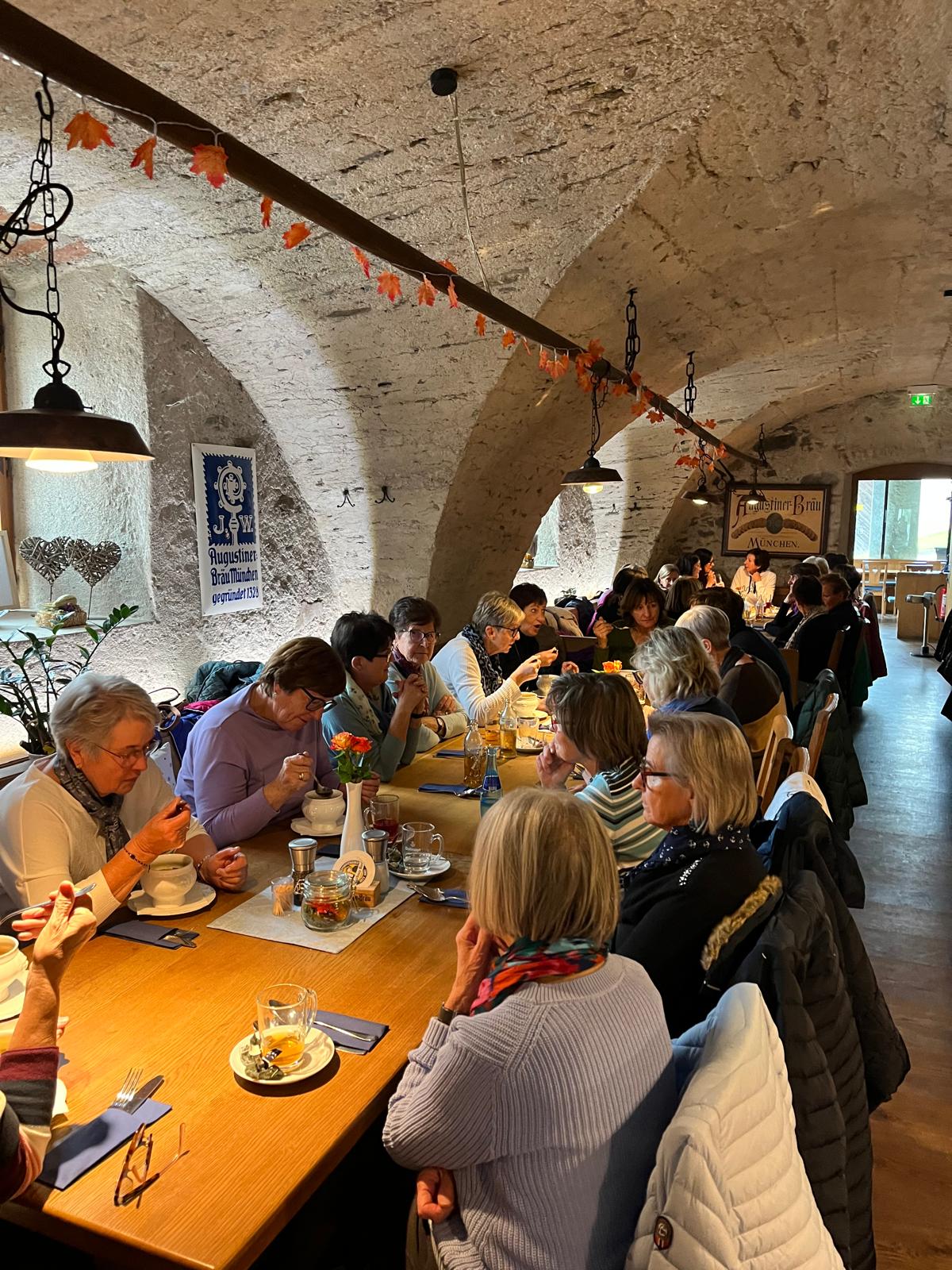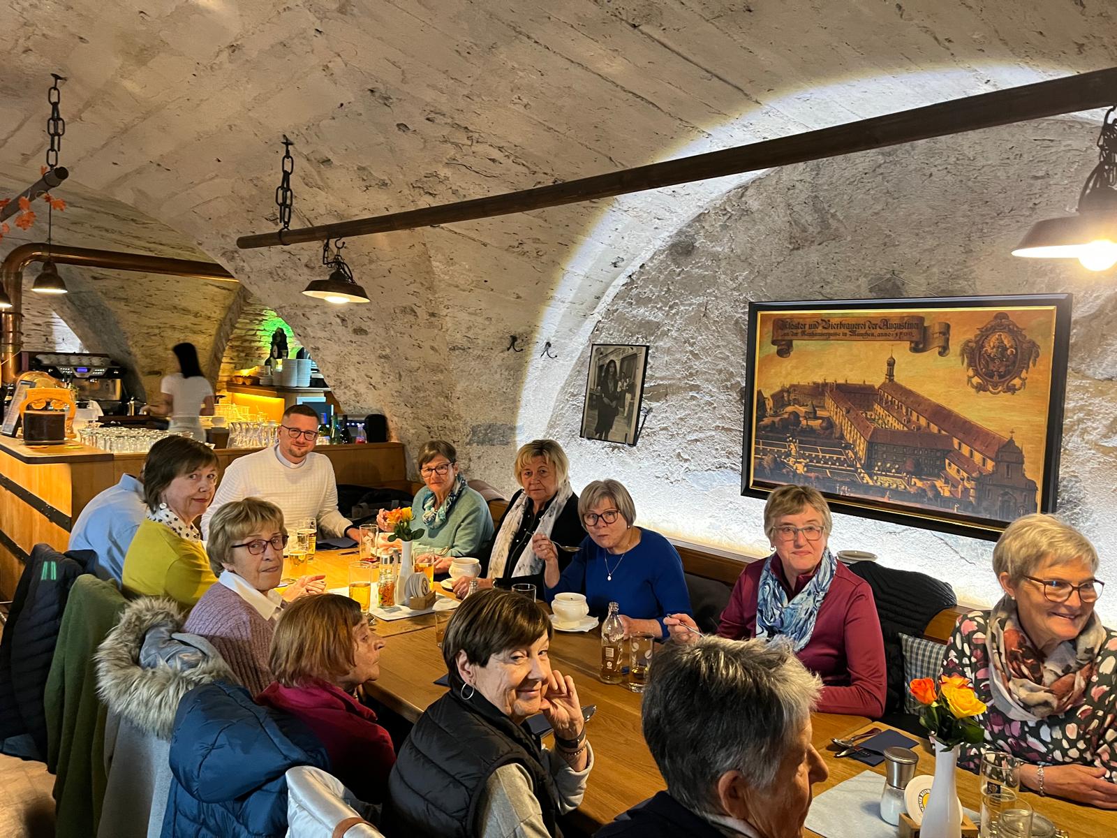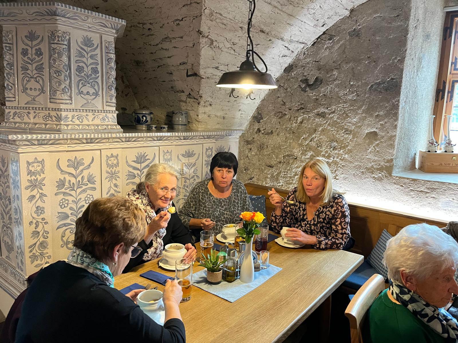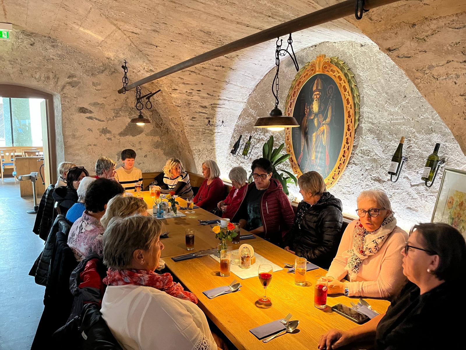 Nach dem Rundgang folgte ein gemeinsames Mittagessen in der Orangerie. Bei gutem Essen und netten Gesprächen genossen alle die gemeinsame Zeit. Am Nachmittag fuhren wir weiter nach Mieming, wo im Café Maurer bei Kaffee und Kuchen ein gemütlicher Abschluss stattfand. Gut gestärkt und mit vielen schönen Eindrücken traten wir schließlich die Heimfahrt an. Es war ein wunderschöner und bereichernder Tag, geprägt von Gemeinschaft, Glauben und Zuversicht.