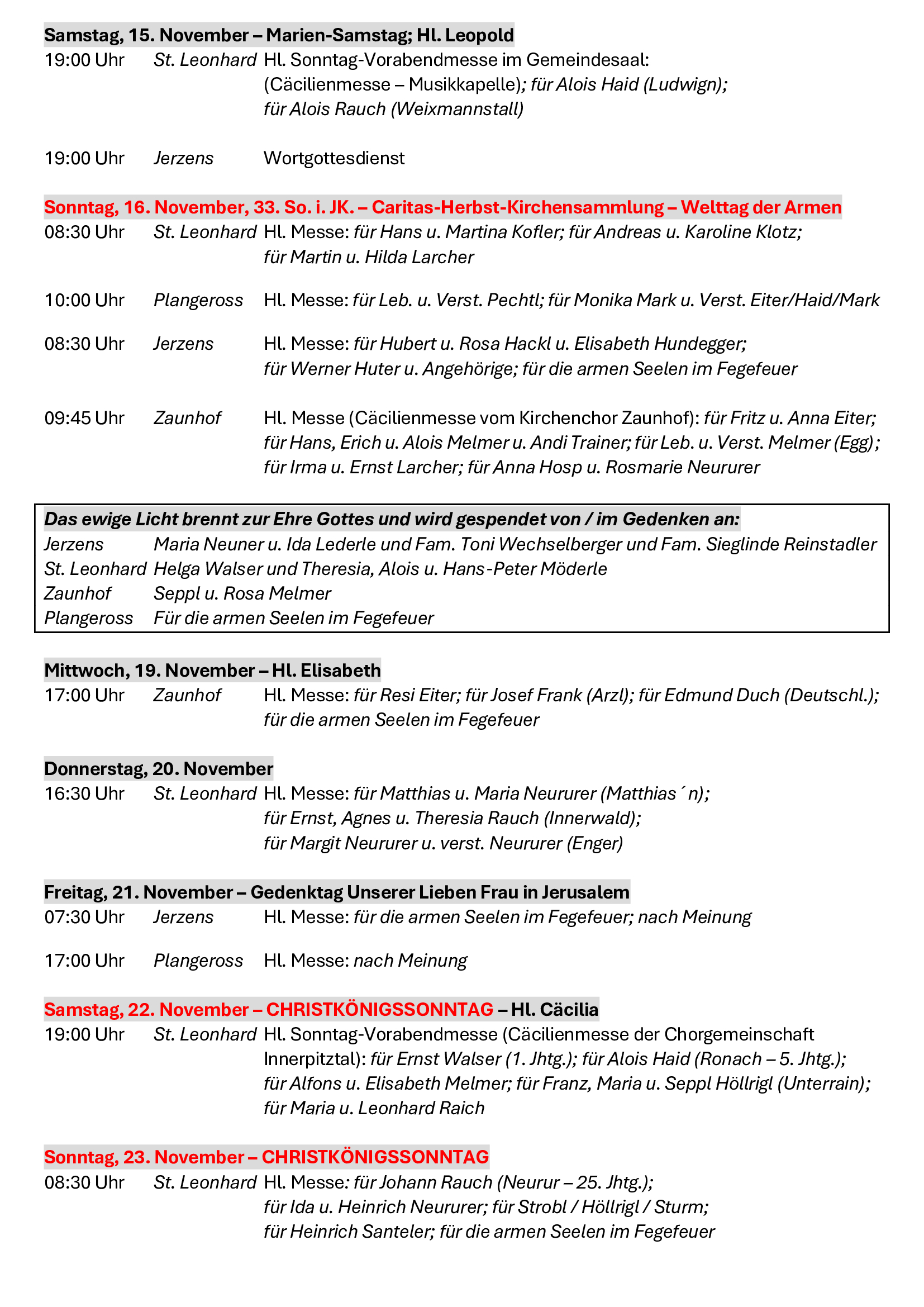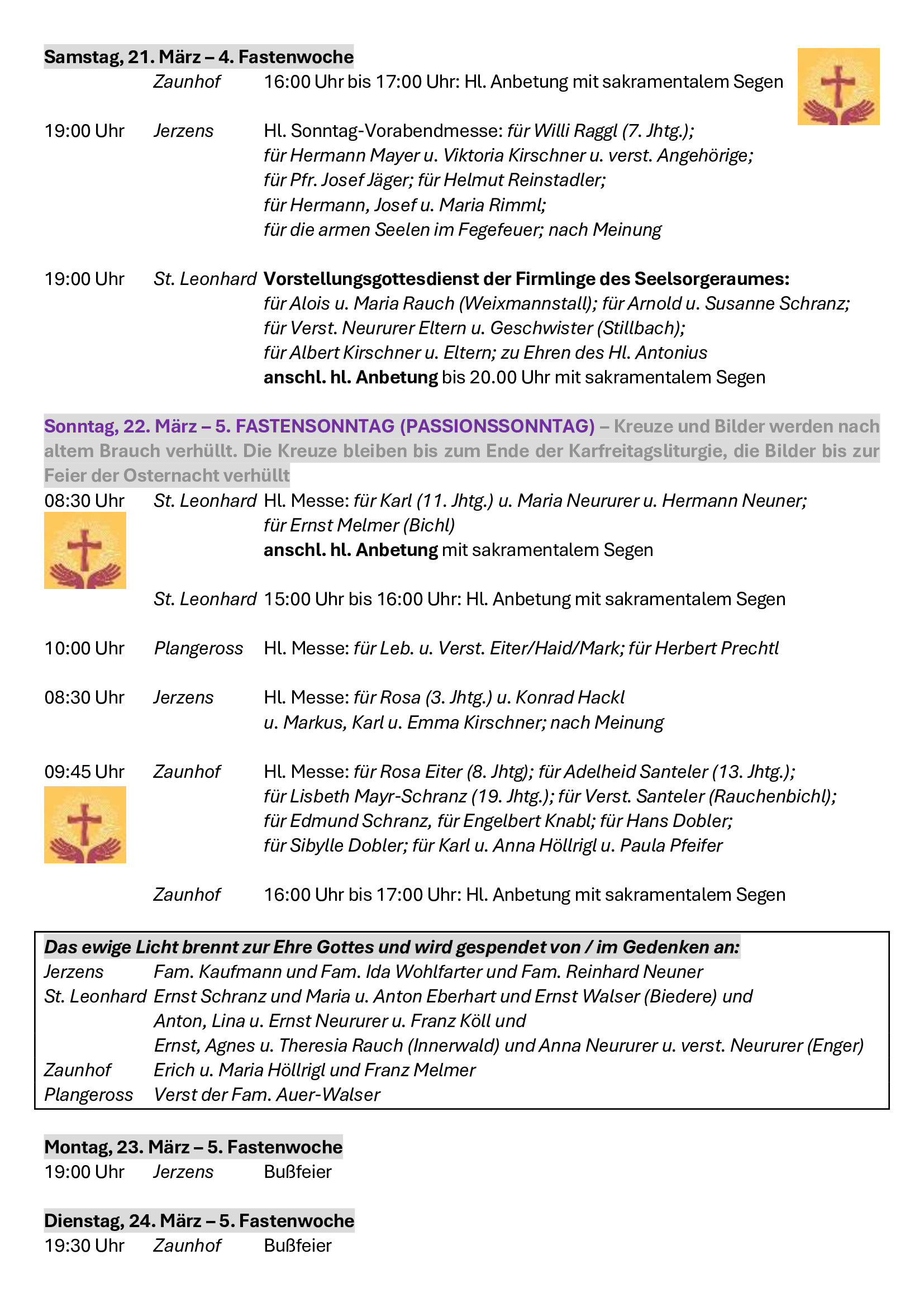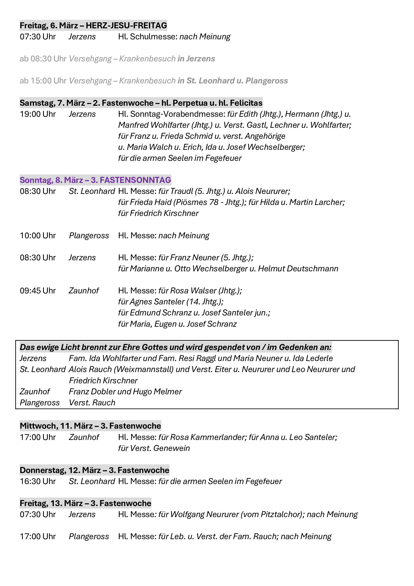 Neben all den äußeren Herausforderungen bleibt der Grundauftrag für jede unserer vier Kirchengemeinden der Auftrag Jesu, das Reich Gottes im konkreten Alltag zu suchen und umzusetzen. „Euch soll es zuerst um Gottes Reich und Gottes Gerechtigkeit gehen, dann wird er euch alles Übrige dazugeben.“ (Mt 6,33). Ich freue mich als zuständiger Pfarrer mit den Gläubigen vor Ort und mit den Gästen, die bei uns Erholung suchen, auf dem Weg zu sein, dem Reich Gottes nachzuspüren und ihm vielleicht auch eine konkrete Gestalt zu geben.